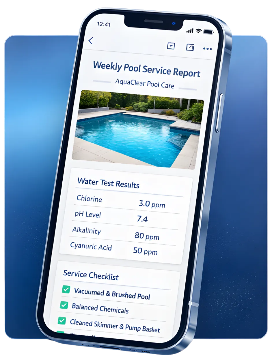 At AquaCare Pool Service, we believe great service means clear communication. That’s why we use modern tools and detailed reporting—so you always know exactly how your pool is doing, even when you’re not home.